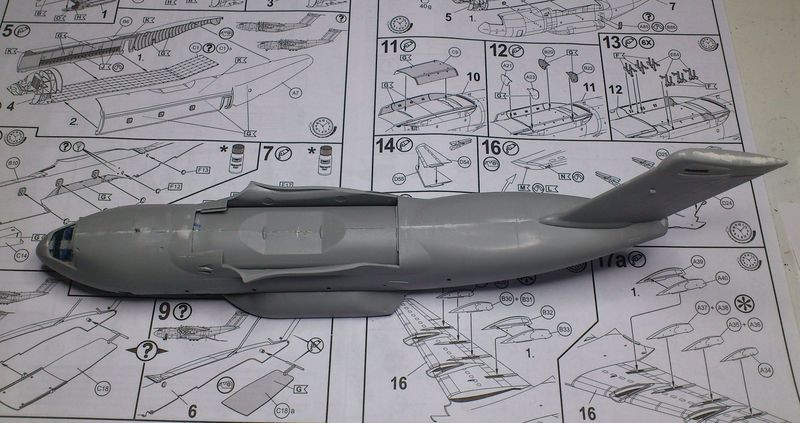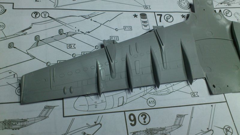 An den Rumpf sind einige Antennen gleich mitangegossen. Eine Marotte, die Revell auch bei manchen Zivilflugzeugen hat. Trotz aller Vorsicht sind während des Baus drei der vier Antennen abgebrochen. Leider liegen diese dem Bausatz nicht extra bei. So ganz erschließt sich mit dieses Angießen nicht. Nächstes Mal rasiere ich sie vor dem Bau gleich weg.