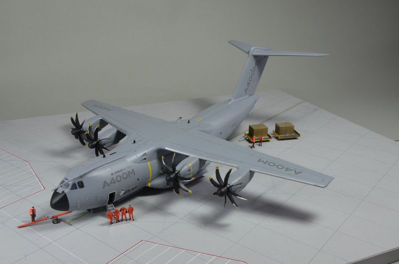 Ein schönes Modell!. Den grauen Rumpf mit den dunkelgrauen Schriften und Linien finde ich sehr ästhetisch, so dieser Begriff für ein Militärflugzeug überhaupt zutreffen kann. Transporter sind neben meinen Zivilflugzeugen bislang die einzigen Militärmaschinen bei mir im Regal. Diese Art der Lackierung findet sich ähnlich auf einigen US-Kampfjets wieder, vielleicht lasse ich mich ja mal hinreißen.