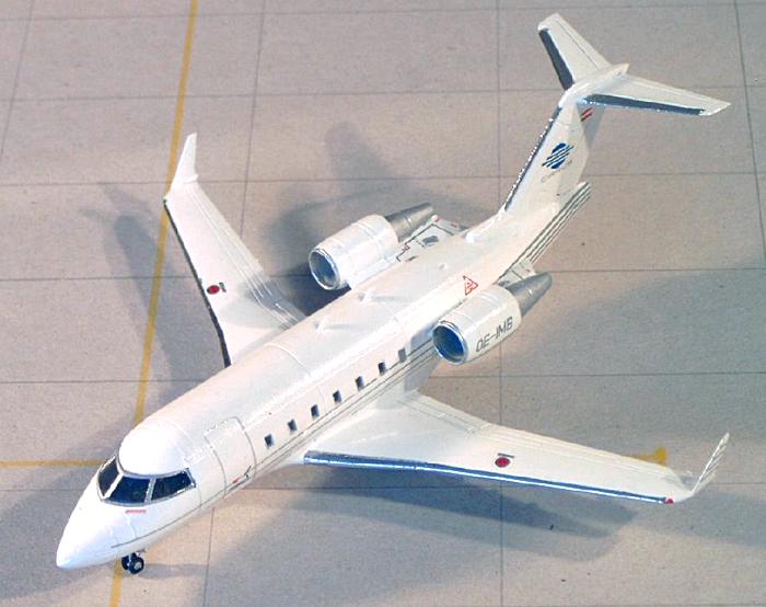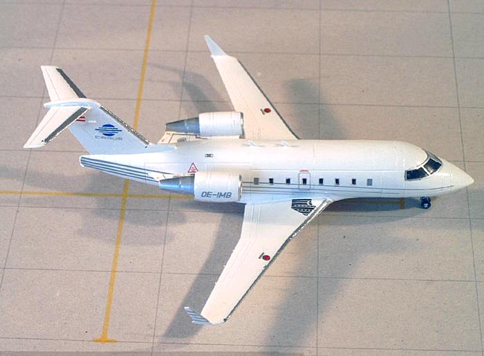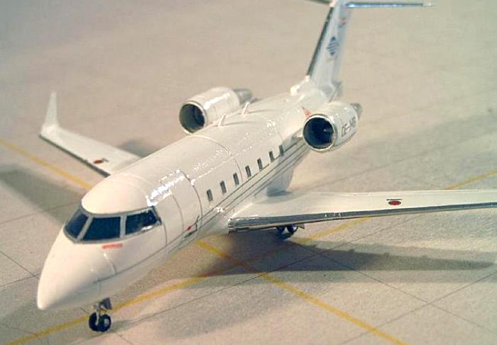 Das Vorbild Bei der Bombardier Challenger 604 handelt es sich um ein zweistrahliges Geschäftsreiseflugzeug in Tiefdeckerauslegung. Das Flugzeug verfügt über ein Zwei-Mann-Cockpit und über eine Kabine für bis zu 19 Passagiere. Die CL 604 ist eine Weiterentwicklung der Challenger 600 bzw. 601. Durch den Einbau eines zusätzlichen Tanks konnte die Reichweite gegenüber der Basisversion CL600 um 2272 km vergrößert werden.