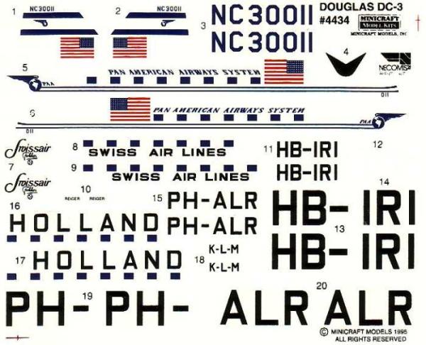 Die Decals, hier hat man PanAmerican, KLM und Swissair zur Auswahl, sind komplett und lassen sich gut aufbringen.