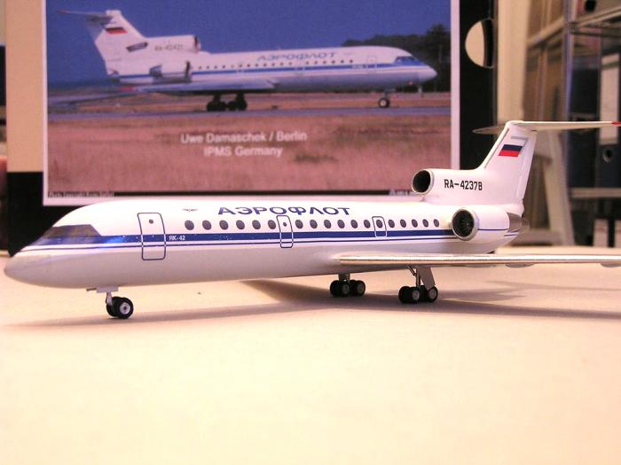 Der Erstflug fand am 07.März 1975 (CCCP-1974) statt und die Aeroflot nahm den Liniendienst 1980 auf. Von Anfang an gab es Probleme im Heckbereich, frühe Materialermüdung und starke Vibrationen bescherten ihr die Einstellung des Flugbetriebes bis 1984 und eine technische Überarbeitung, von der man einen Eindruck hat: sie hält bis heute an. Mittlerweile ist sie durchkonstruiert, dem Basismuster folgte die verbesserte Yak-42D, etwa 180 Maschinen (genaue Zahlen weiß man nicht) wurden letztlich gebaut. Der Druckrumpf bietet Platz für etwas mehr als 110 Passagiere und einige Fluggesellschaften in der GUS und Kuba nutzen den Flugzeugtyp bis heute. Modernisierungsversuche, neue und größere Versionen, mit und ohne westliche Triebwerke und Technik waren im Gespräch, begann man zu bauen (Yak-142, Yak-242). Letztlich blieb es bei den Plänen und halbherzigen Versuchen.