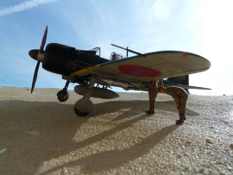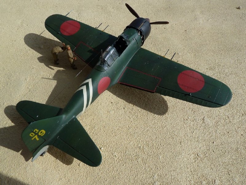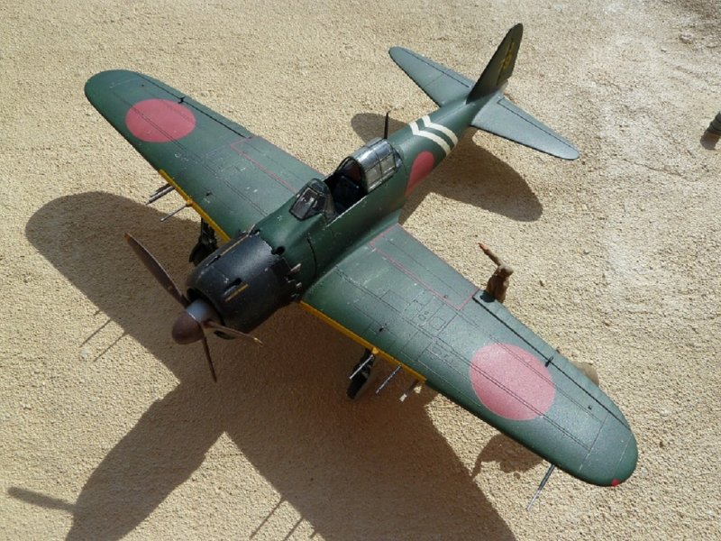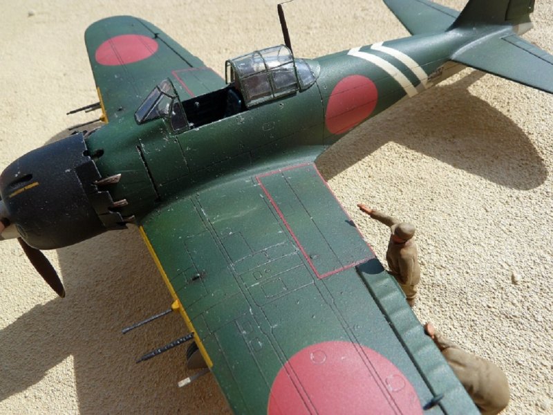 Vorbild: Die A6M5, auch Modell 52 genannt, machte mehr als die Hälfte der gesamten Zero-Produktion aus. Die ab 1943 eingeführte Variante erhielt die kurze Spannweite des Modells 32, jedoch mit abgerundeten Flügelenden. Änderungen am Sakae 21 Motor führten zu einer Leistungssteigerung von bis zu 572 km/h. Die Maschinen erhielten einen zweistufigen Lader. Die C-Variante war mit drei 13 mm Maschinengewehren und zwei 20mm Maschinenkanonen die am schwersten bewaffnete Version aller Zeros. Im November 1944 in Dienst gestellt, galt sie aufgrund der Gewichtszunahme als untermotorisiert und wurde in nur 93 Exemplaren gefertigt.