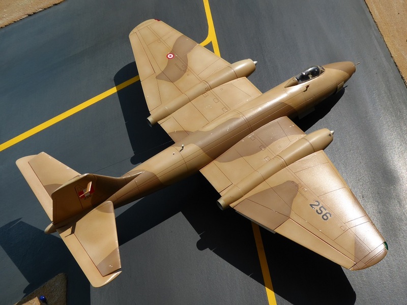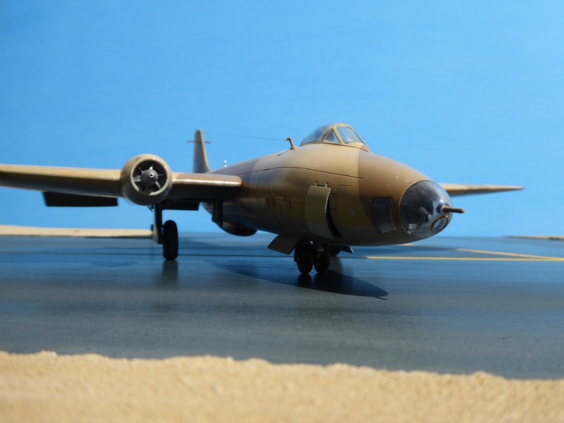 Vorbild: Die Canberra war ein britischer Mitteldecker aus der ersten Generation strahlgetriebener Kampfflugzeuge. Zu Beginn der Entwicklungsarbeiten war der Zweite Weltkrieg noch in vollem Gange. Der Erstflug des als Nachfolger für die De Havilland Mosquito entwickelten Musters fand aber erst am 13.Mai 1949 statt. Zwei Jahre später erfolgte die Auslieferung der ersten Exemplare an die Royal Air Force. Die aus der Bomberversion abgeleiteten Aufklärer und Interdiktor sind an Ihrem charakteristischen "Jäger-Cockpit" zu erkennen, welches nicht mittig, sondern an der Backbordseite angebracht ist.