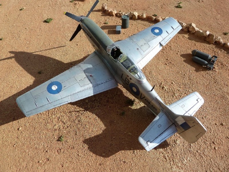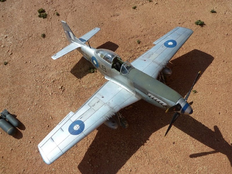 Zum Modell: Der Bausatz sowie meine Bauweise inklusive der Lackierung ist weitgehend identisch mit meiner US-Mustang (siehe P-51 D von Freddie F. Ohr), so dass ich mich hier auf die Unterschiede beschränke.