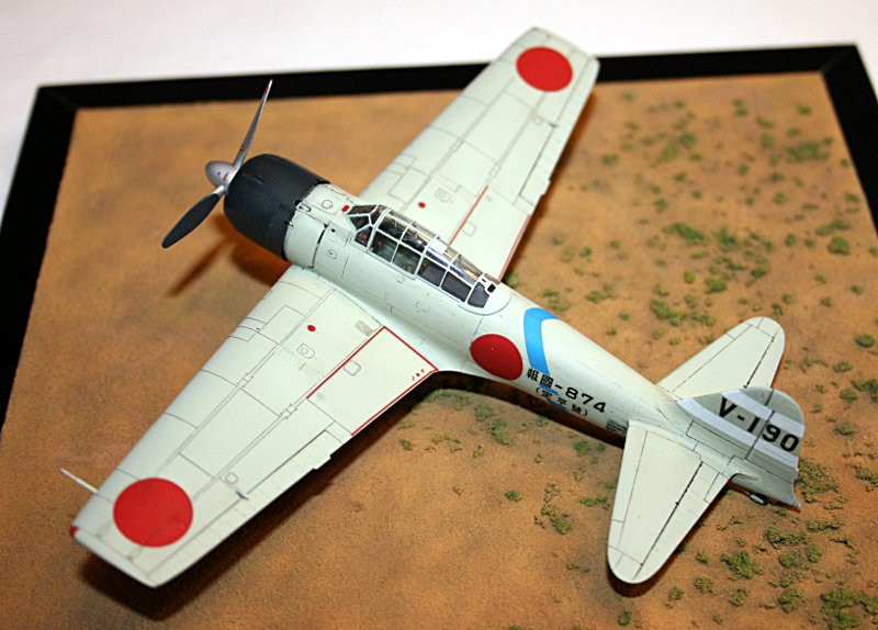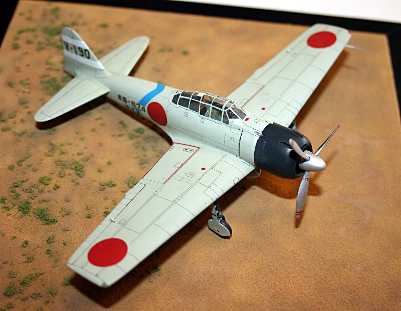 Vorbild: Der Erstflug einer Zero fand am 1. April 1939 statt. Noch vor Produktionsfreigabe fand der Ersteinsatz statt, als 15 Prototypen Mitte 1940 für Angriffe auf chinesische Ziele nahe Hongkong eingesetzt wurden. Sie waren so erfolgreich, dass im Juli 1940 sofort mit der Produktion begonnen wurde.