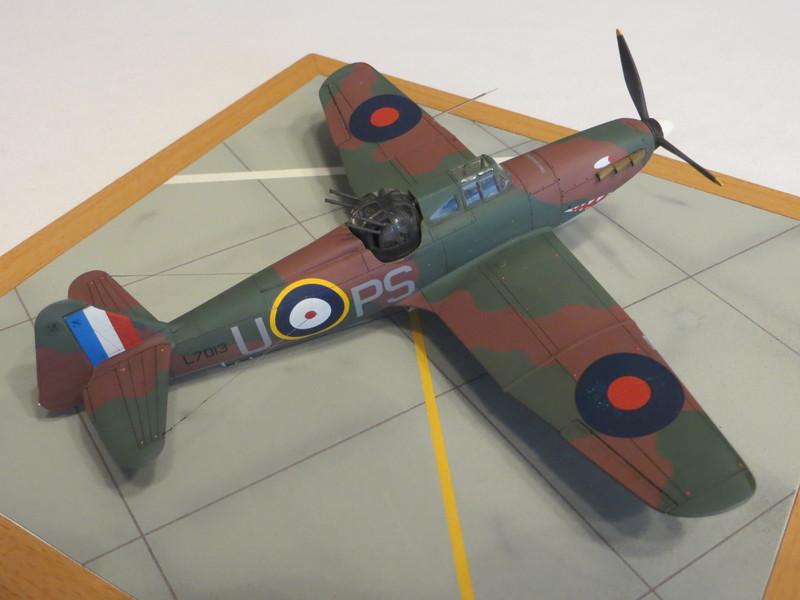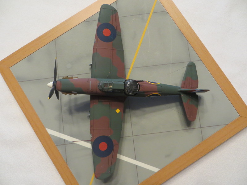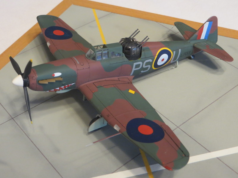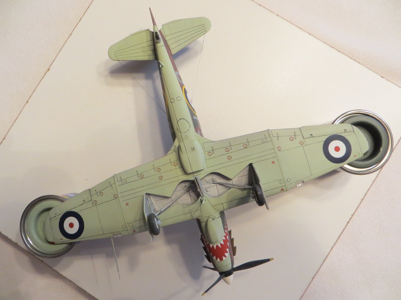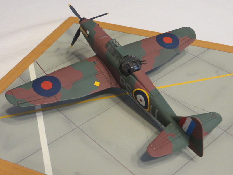 Bausatz: Der Bausatz von AIRFIX gehört zu den Neuheiten dieser Firma. Er zeichnet sich durch feine versenkte Gravuren und eine sehr gute Passgenauigkeit aus. Besonders die Montage des Fahrwerks ist von der Passgenauigkeit sehr überzeugend. Es gibt zwei Decalvarianten: Eine getarnte Maschine und ein schwarzes Flugzeug. Ich entschied mich für das getarnte Exemplar. Unter den Tragflächen verwendete ich noch zusätzliche Roundels. Besonders gefällt auch der umfangreiche stencilbogen. Dazu gibt es ein gesondertes Blatt mit 4 Seitenriss Zeichnungen, wo diese stencils zu positionieren sind.