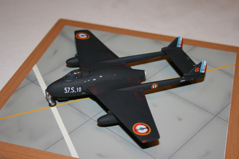 Man muss leider feststellen, dass das Modell, was die Gestaltung der Teile der Hauptbaugruppen, also Rumpf und Flächen betrifft, konstruktiv nicht besonders geschickt gelöst worden ist. Vergleicht man den Bausatz mit der Vampire T.11 von AIRFIX, so hat AIRFIX hier mit seinem kit "klar die Nase vorn": Auf Grund der konstruktiven Lösung dünne Hinterkanten an allen Flächenteilen! Nach dem verkleben der Baugruppen wie Rumpf, Tragflächen oder Reservetanks muss viel gespachtelt, bzw. nachgearbeitet werden.