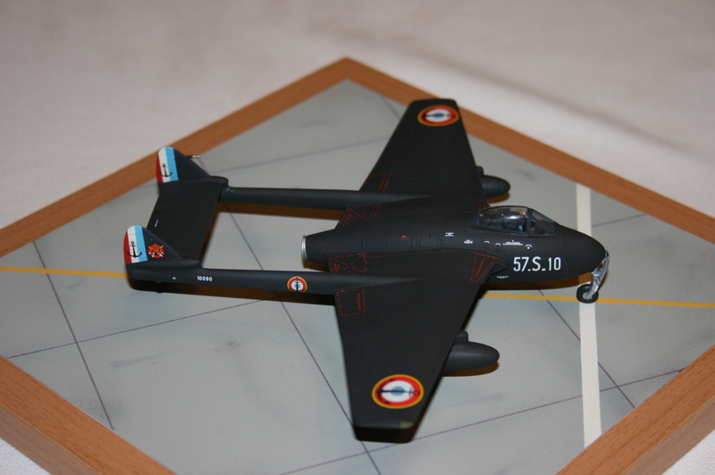 Decaling: Man kann das Modell in 4 französischen Bemalungsvarianten bauen. Dazu gibt es einen bei AVIPRINT in der Tschechischen Republik exakt gedruckten decalbogen, der auch das stenciling in weiß und schwarz beinhaltet und der sich sehr gut verarbeiten lässt. Mehr kann man hier eigentlich nicht verlangen - sehr gut! Ich entschied mich für eine blaue Maschine der Aèronavale, welche zur Jagdfliegerschule für Flugzeuge mit Strahlantrieb gehörte und in Marokko, Ende 1950, stationiert war.