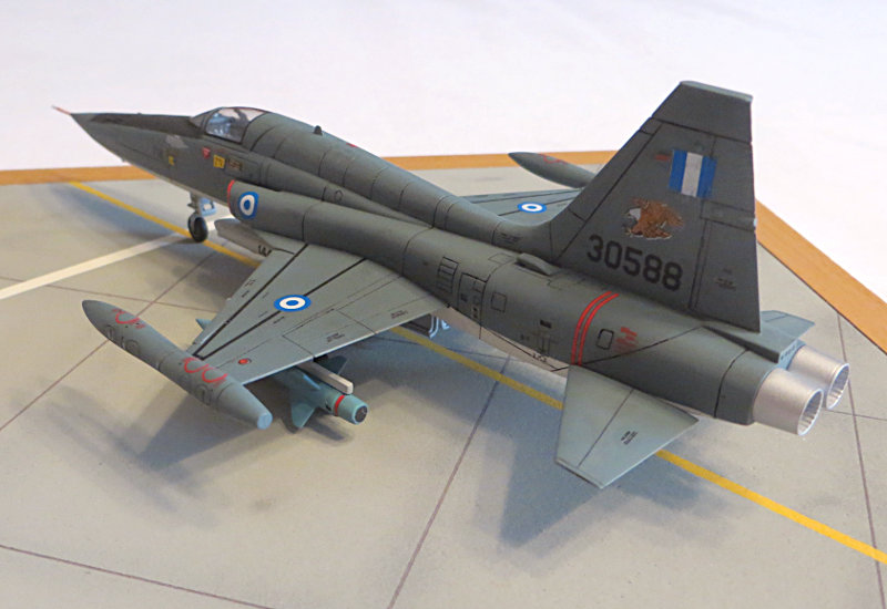 Die Lackierungen der F-5A in Griechenland waren sehr unterschiedlich: Es gab auf der Oberseite getarnte / Unterseite hellgrau, Oberseite getarnte / Unterseite Silber, Oberseite blaugrau / Unterseite hellgrau und Sonderlackierungen.