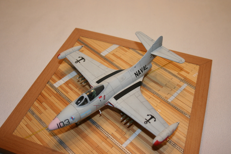Vorbild: "Die Grumman F9F Panther war ein einstrahliger Jagdbomber des US - Herstellers Grumman. Sie wurde für die US Navy entwickelt und war dort eines der ersten trägergestützten Jet-Muster. Anfang der 1950er-Jahre entwickelte Grumman eine Version mit gepfeilten Tragflächen, die F9F Cougar.