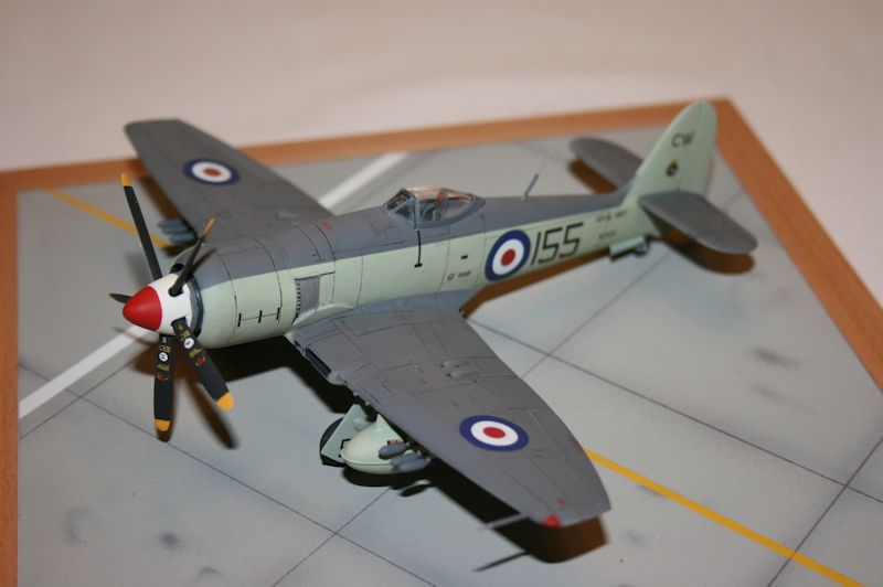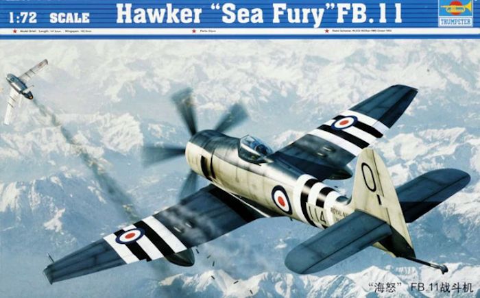 Vorbild: Die Hawker Sea Fury ist das Ende einer Kette von Jagdflugzeugen für die RAF, die mit dem Doppeldecker Fury begann und so erfolgreich mit der Hurricane, Typhoon und Tempest fortgesetzt wurde. Für einen Einsatz bei der RAF kam die Fury zu spät und die Fleet Air Arm wollte die Zeit bis zum Einsatz der Strahlflugzeuge noch überbrücken. So wurde aus der Fury die Sea Fury. Der erste Fury-Prototyp flog am 1. September 1944 erstmal und das erste Marine-Flugzeug am 21. Februar 1945. 1947 gingen die ersten Sea Fury Mk. X an die Fleet Air Arm. Die Weiterentwicklung als Jagdbomber war die FB.Mk. 11. Als Trainingsflugzeug entwickelte Hawker die T.Mk. 20, die in 61 Exemplaren gebaut wurde. Für den Irak und Pakistan entstand die T.Mk. 61, die sich in der Kanzelverglasung deutlich von den britischen Maschinen unterschied. Insgesamt sollen der Irak und Pakistan jeweils fünf solche Maschinen erhalten haben. Die letzten von Hawker ausgelieferten Sea Fury's gingen ab 1958 nach Deutschland als Zielschlepper. (V.H.)