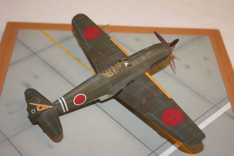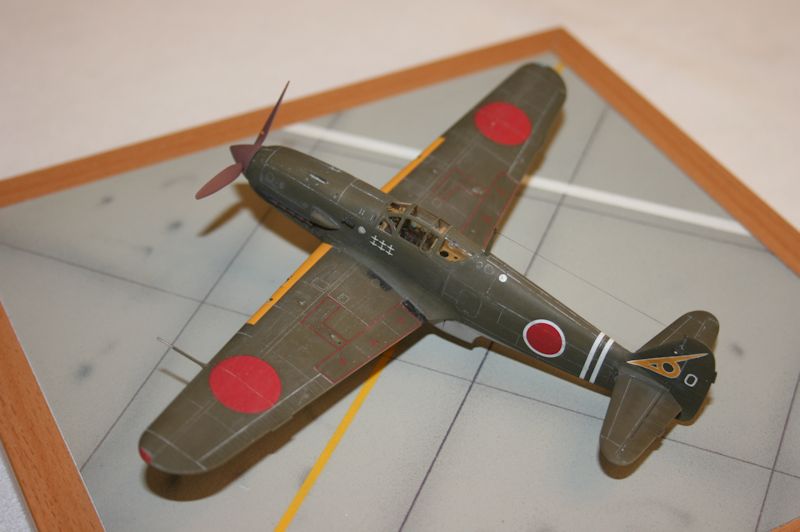 Vorbild: Die Kawasaki Ki-61 war das einzige mit einem flüssigkeitsgekühlten Reihenmotor ausgestattete Jagdflugzeug, das Japan wähend der 2. Weltkriegs einsetzte. Der Ha.40 Motor war ein Lizenzbau des deutschen DB 601 Triebwerks. Der erste von einem Dutzend Ki-61 Prototypen hob im Dezember 1941 erstmals ab. Die Serienproduktion begann ca. 1½ Jahre später und die ersten Maschinen erreichten im Spätsommer 1942 die Einheiten. Die Bewaffnung wurde in den nachfolgenden Fertigungslosen stetig verbessert und das Flugzeug wurde schließlich sogar mit 30mm Waffen ausgestattet. Auch konstruktiv war das Flugzeug permanent Änderungen unterworfen. (V.H.)