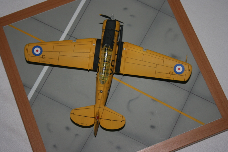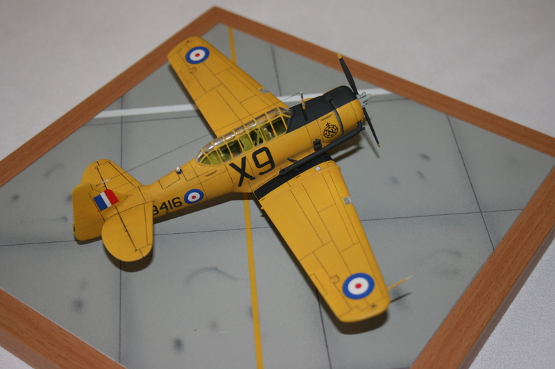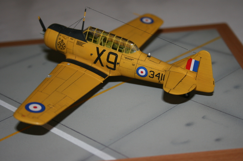 Die Lackierung erfolgte mit Enamelfarben von Humbrol, Testors und Revell. Der Farbton gelb ist trainer yellow (24) von Humbrol. Im Original ist das Flugzeug auch matt lackiert. Die Alterung erfolgte mit dark wash von MIG. Der Decalbogen gestattet die Darstellung von zwei kanadischen Flugzeugen. Leider gibt es keine stencils. Diese habe ich aus der Grabbelkiste heraus gesucht. Belebt das Modell ungemein, sieht einfach besser aus....