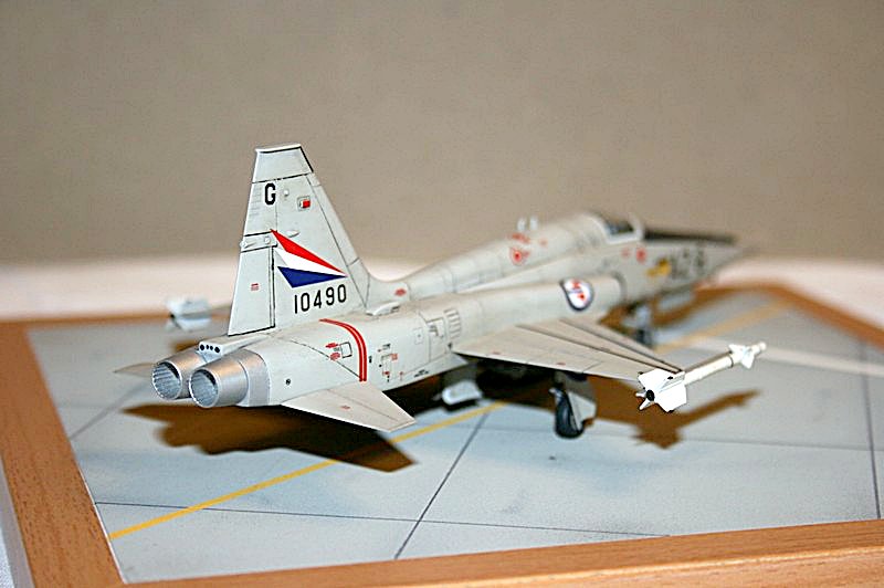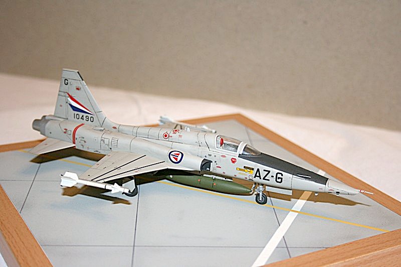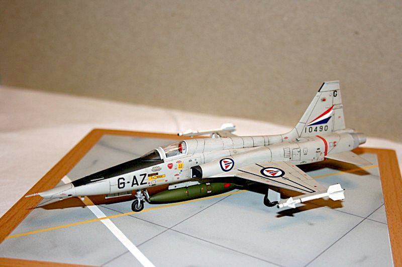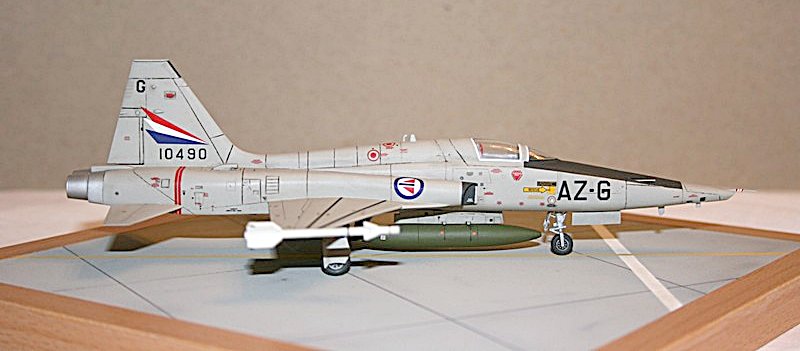 Das Flugzeug RF-5A ist bewaffnet! Neben den Kanonen (2 x 20 mm Kanone M 39 / 560 Schuss ) vor dem Cockpit habe ich mich für eine Bewaffnung mit zwei Sidewinder Luft-Luft Raketen entschieden. Außerdem habe ich den Zusatztank unter dem Rumpf angeordnet.