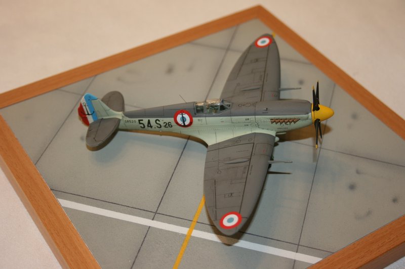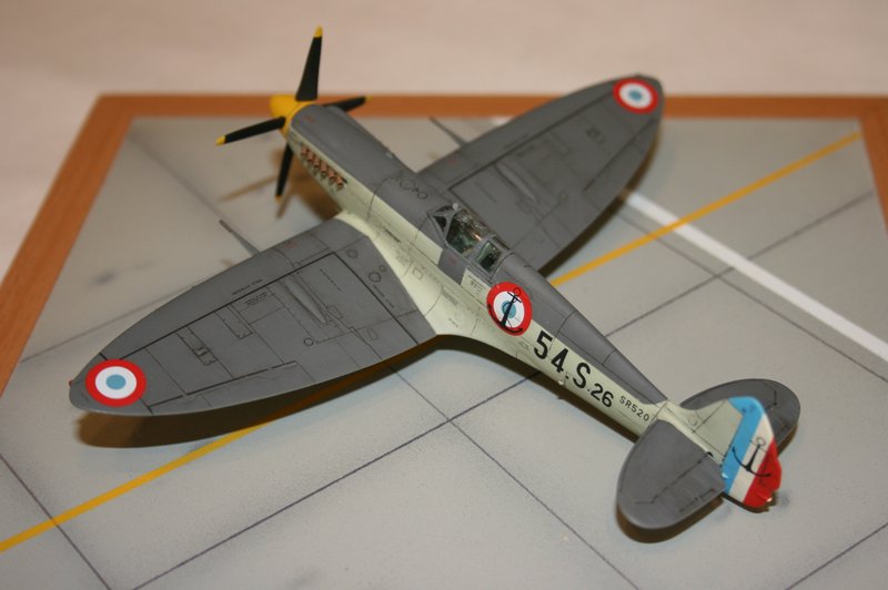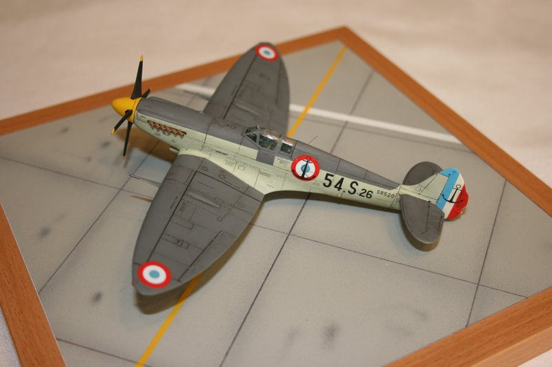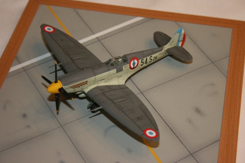 Vorbild: Gegen Ende des zweiten Weltkrieg und danach erwarb Frankreich für seine Marineluftstreitkräfte Aèronavale in England diverse gebrauchte FAA "Seafire" unterschiedlicher Versionen, zunächst Mk. III, später frühe Mk. XV. Wie man Fotos der französischen Einsatzvariante entnehmen kann, wurde das Flugzeug, neben seiner Rolle als Jagdflugzeug, auch als Jagdbomber eingesetzt.