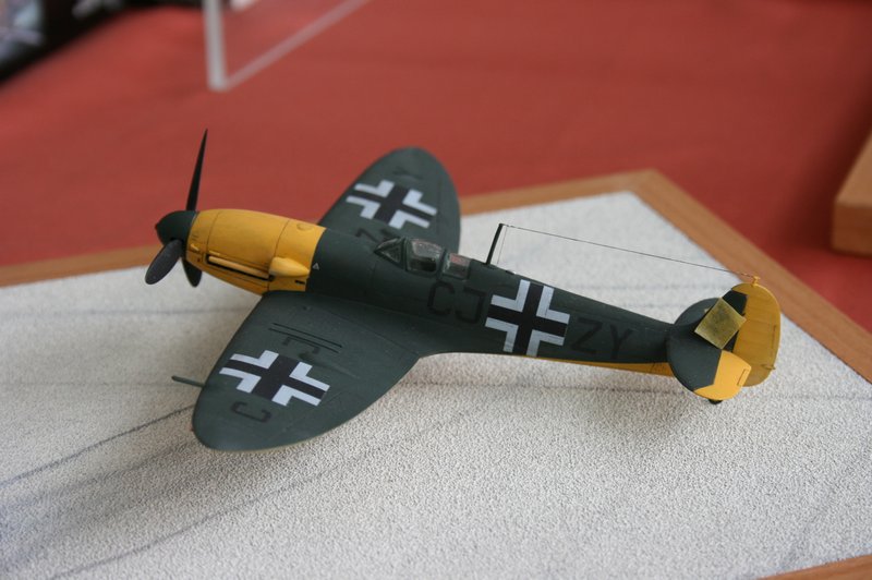 Bei dem hier gebauten Modell handelt es sich um eine Spitfire Mk.V mit der Besonderheit, dass der ursprüngliche Rolls Royce Merlin-Motor, durch einen deutschen Motor des Typs Daimler Benz DB-605 ausgetauscht wurde. Ebenso trägt das Flugzeug den kompletten Propeller einer Bf 109.