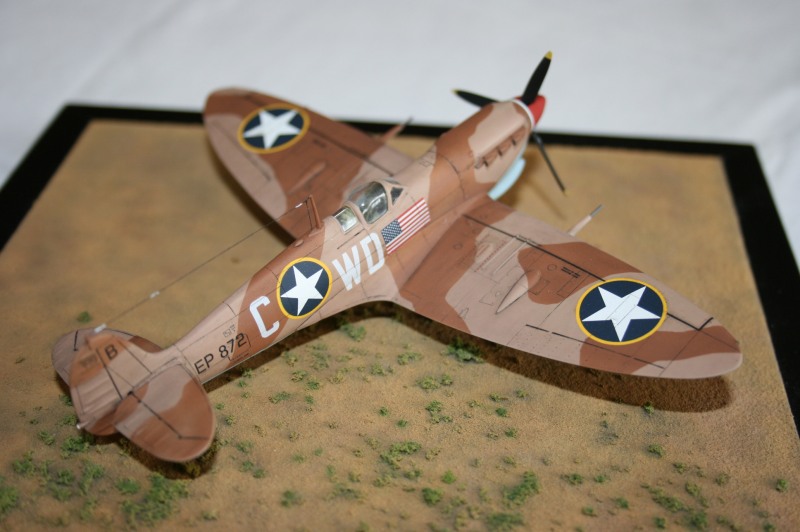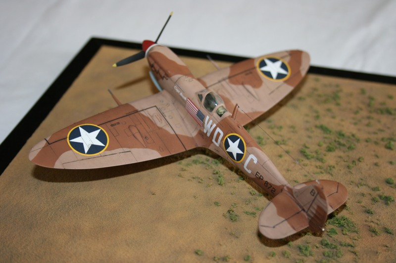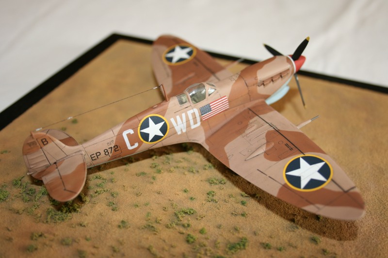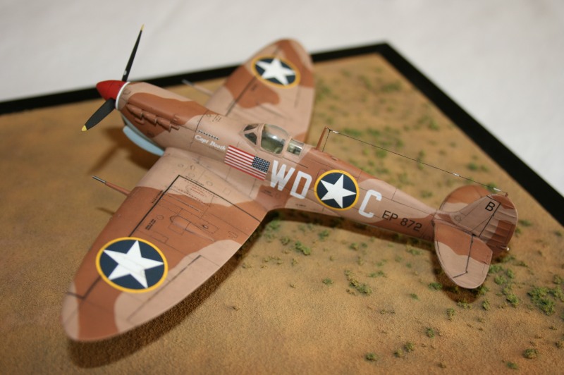 Vorbild: Während des II. Weltkrieges verwendete die US Air Force zahlreiche Spitfire unterschiedlicher Versionen, auf unterschiedlichen Kriegschauplätzen. Schon immer haben mich diese US-Spitfire sehr fasziniert und, von ihrer Bemalung her, sehr begeistert. Jetzt habe ich endlich ein solches Projekt realisiert! Bei dem hier gezeigten Flugzeug handelt es sich um ein Exemplar, welches in Nordafrika 1943 eingesetzt wurde.