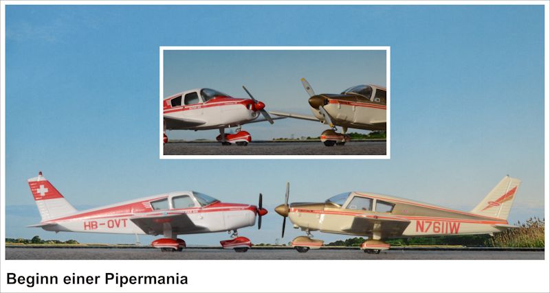 Wir haben uns hier zum Bau der besonders attraktiven Cherokee B mit der schweizerischen Registrierung HB-OVT und dem starken 180 PS-Triebwerk - allerdings in der alten, kleineren Cowling (ja, so etwas hat es damals gegeben!) entschieden.