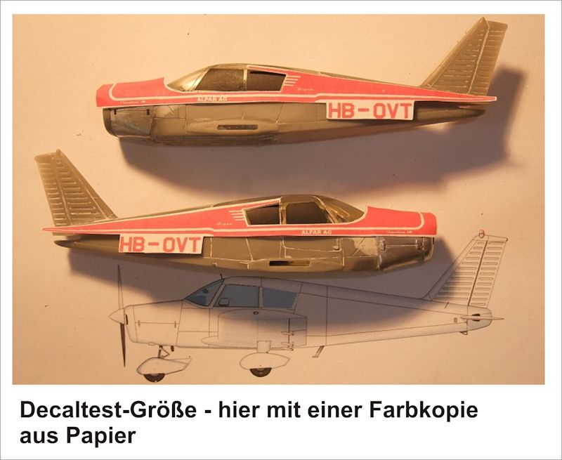 Das heißt: die Decals werden mit einem Kopierer/Farbkopierer kopiert, ausgeschnitten und die richtige Lage und Position erst einmal simuliert, bevor man "scharf" schießt und das einzig im Kit vorhandene Decal nicht "verschießt".