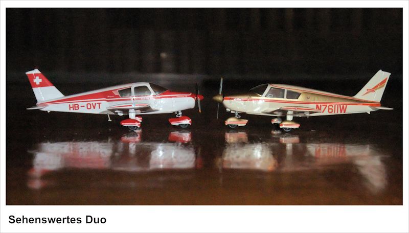 Das tolle Ergebnis bewog uns noch weitere PA-28 "aus der Produktionsline zu nehmen" und gleich noch die "goldene" N7611W mit selbstgefertigten Decals und 180-hp-Triebwerk - nun allerdings mit der großen, moderneren, Cowling - zu bauen.