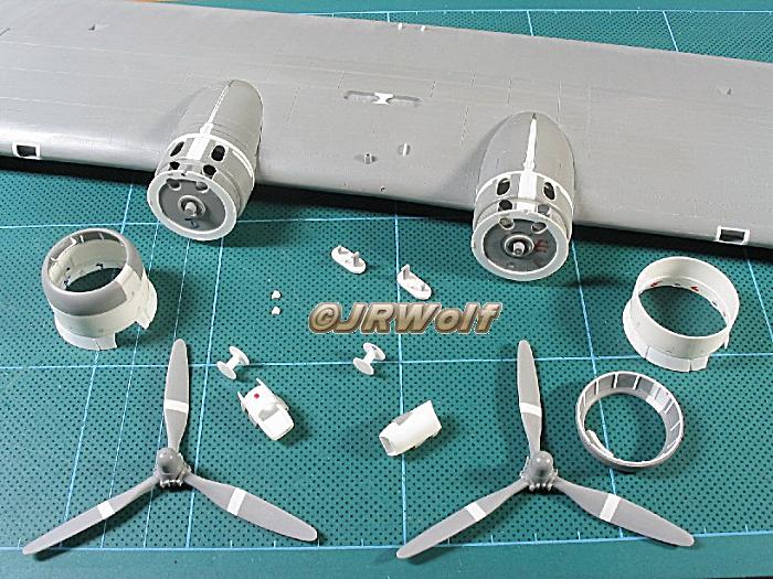 Other than detailing its interior, I modified the cowlings, since those from the kit are too small (the outside diameter is smaller than the diameter of the real engine scaled down!). Furthermore I thinned the wings at the tips (and the wingtip floats too).