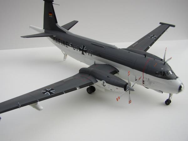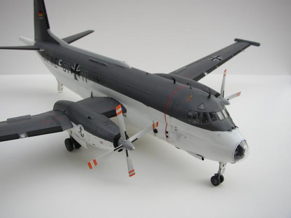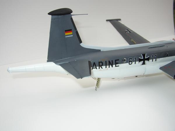 Bei der weiteren Montage gab es keine Probleme. Die Tragflächen habe ich erst unmittelbar vor der Lackierung mit dem Rumpf verbunden und das ohne zu spachteln (!). Die Bewaffnung für den Waffenschacht liegt bei und sollte genutzt werden. Eine Vielzahl von Antennen muss dann noch montiert werden. Dabei geht die Bauanleitung immer gut auf die länderspezifischen Unterschiede ein. Die Einstiegsleiter kann geöffnet werden. Das bietet den Vorteil, dass Probleme in der Ballastierung kaschiert werden können, reicht die Leiter doch fast bis auf den Boden. Die inneren Landeklappen können geöffnet werden. Eigenartigerweise ist es bei Vorbild am Boden auch meist so.
