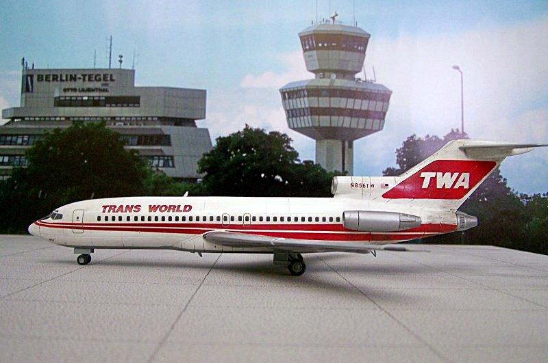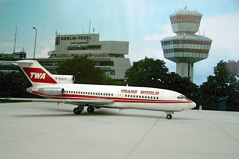 Im Jahre 1987 hat die US-amerikanische Fluggesellschaft TWA die Zulassung für den Berlin-Flugverkehr erhalten. Ziel ab Tegel war zunächst Brüssel, mit Umsteigemöglichkeit nach New York. Im Jahre 1988 kamen nach Antrag Landerechte in Westdeutschland hinzu. - Angeflogen wurden jetzt auch Hamburg, Frankfurt, Stuttgart und Zürich (CH). Für diese Shuttle- Flüge hat TWA ihre B727-031 eingesetzt. Später kam auch noch London als weitere Destination hinzu.