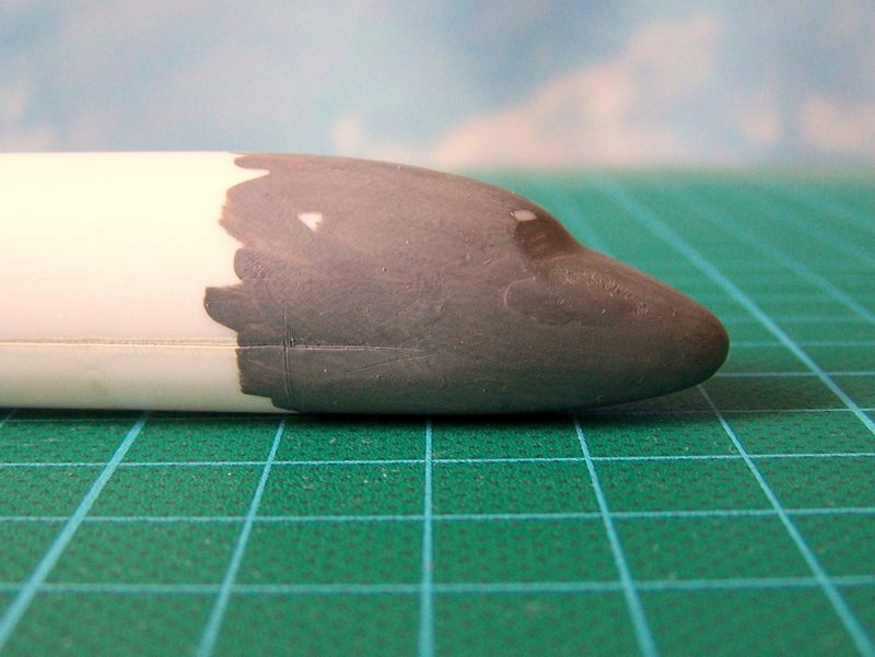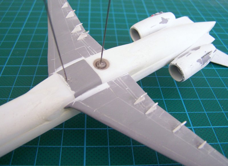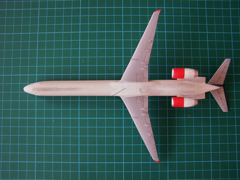 Der Zusammenbau war soweit problemlos, hätte auch noch schneller gehen könnnen, wenn ich das Modell "out-of-the-box" gebaut hätte. Veränderungen beim Bau lagen in der Anpassung der Form des Rumpfbugs sowie der Strömungsleitbleche an Bug und Triebwerkspylonen. Die Tragflügel haben ausserdem etwas Profil bekommen und wurden ausgedünnt und die Flapfairings neu angefertigt.