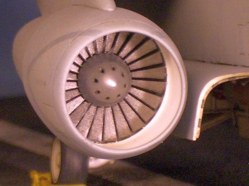 Noch eines zu den Triebwerksgondeln. Wer irgendwie kann, sollte sich neue Triebwerke aus Resin anschaffen. Die Gondeln im Bausatz sind zweiteilig ausgeführt und es ist erforderlich sie im fertig montierten Zustand von innen zu verspachteln. Das ist wirklich nicht witzig, denn man kommt derart bescheiden an diese Stelle, dass man mit neuen, komplett gegossenen Resinteilen seine Nerven schonen könnte. Ich hatte diese Teile leider nicht, denn sie kamen erst auf den Markt als ich bereits fertig war. Wie passend.