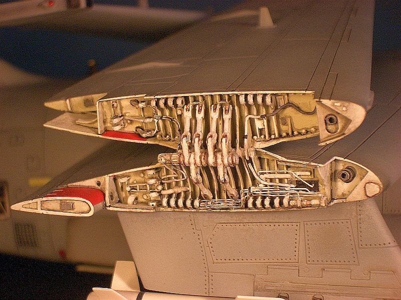 Die offen dargestellten Avionikschächte sind im Eigenbau entstanden. Da ich sehr gute Photos davon hatte, war es schier zu verlockend einige Klappen zu öffnen.