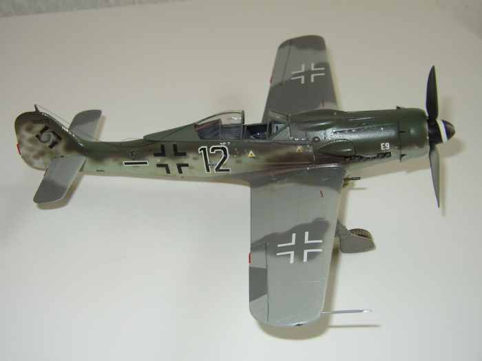 Das einzige echte Manko ist der Fahrwerksschacht. Er zeigt innen die Verkleidungsbleche wie sie bei einer Fw190 A/F/G Serie zum Einsatz kam. Jedoch wurde bei der "Langnasen"-Version das innere Drittel entfernt um so die Verkabelung und die Rohrleitungen des neuen Triebweks einbauen zu können. Mir ist der Fehler erst nach dem Bau und der Lackierung aufgefallen. Das aber die Maschine selten von unten zu sehen ist, ist dieser Fehler nicht sofort offensichtlich.