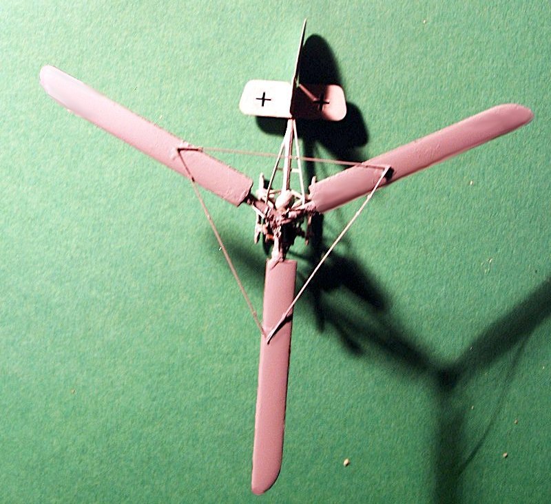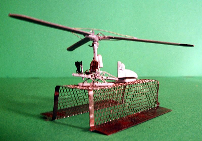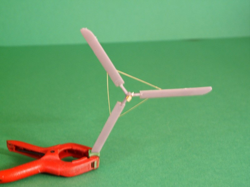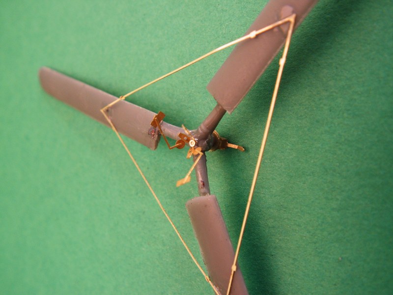 Zusammenbau: Zuerst wird das Grundgerüst aus dem Spritzgussteil getrennt und soweit es geht verschliffen. Danach habe ich mich um die Rotorblätter, Verspannung und die Verstellteile gekümmert. Diese Arbeitsgänge müssen sehr vorsichtig und mit ruhiger Hand ausgeführt werden. Diese Teile sind sehr empfindlich und schwer nach zu richten. Ein zweites kleines Problem kann das Grundgestell werden, da es keine Ausrichtung bzw. Bezugspunkte gibt. Alle anderen Bauteile kann man nach eigener Regie verfahren. Farbangaben gibt es z.T. nach dem RLM-System.