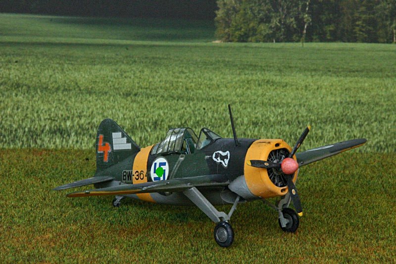 Das Modell Ich habe mir vor längerer Zeit das Hasegawa- Modell einer finnischen Buffalo zugelegt. Da auf den Ausstellungen immer mit Problemen zu rechnen ist, wenn Flugzeuge mit Hakenkreuz gezeigt werden, wollte ich eigentlich die Abziehbilder der Variante nach 1945 einsetzen. Nachdem ich jedoch gelesen habe, dass die finnischen Piloten im 2. Weltkrieg die meisten Erfolge auf diesem Typ erreicht hatten, entschied ich mich doch für eine frühe Bemalung. Leider wird mein Modell deshalb wohl ewig in der Vitrine bleiben.