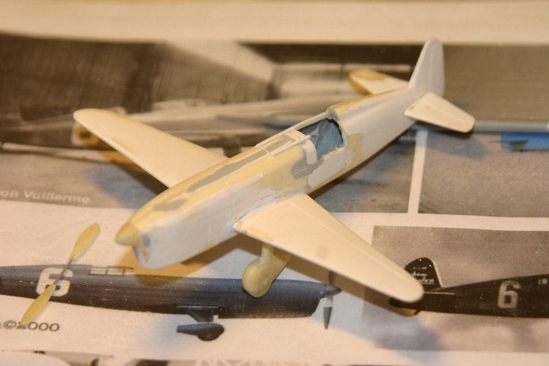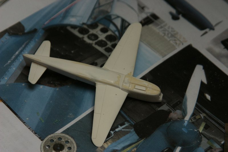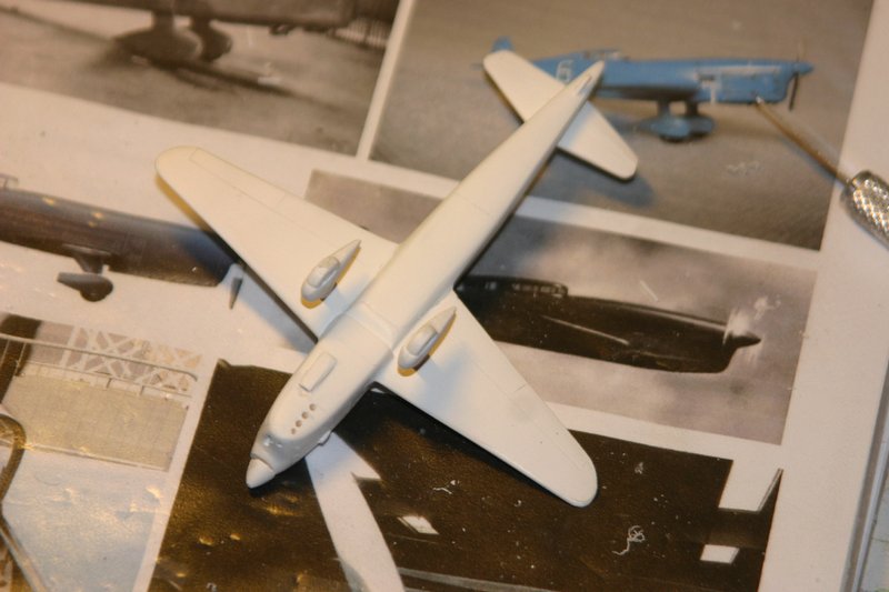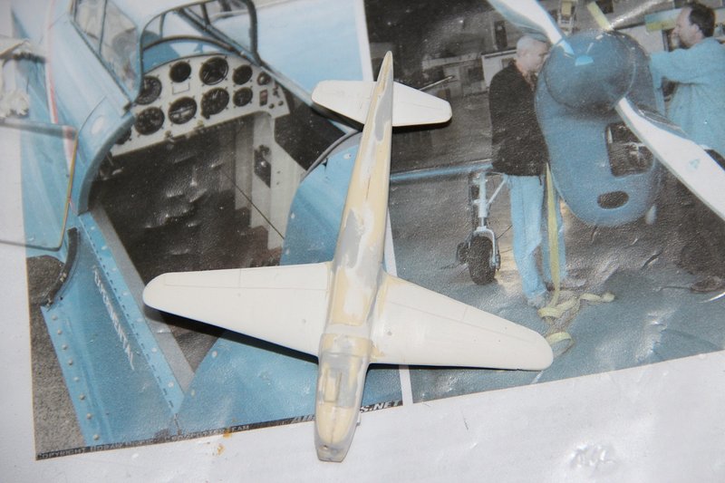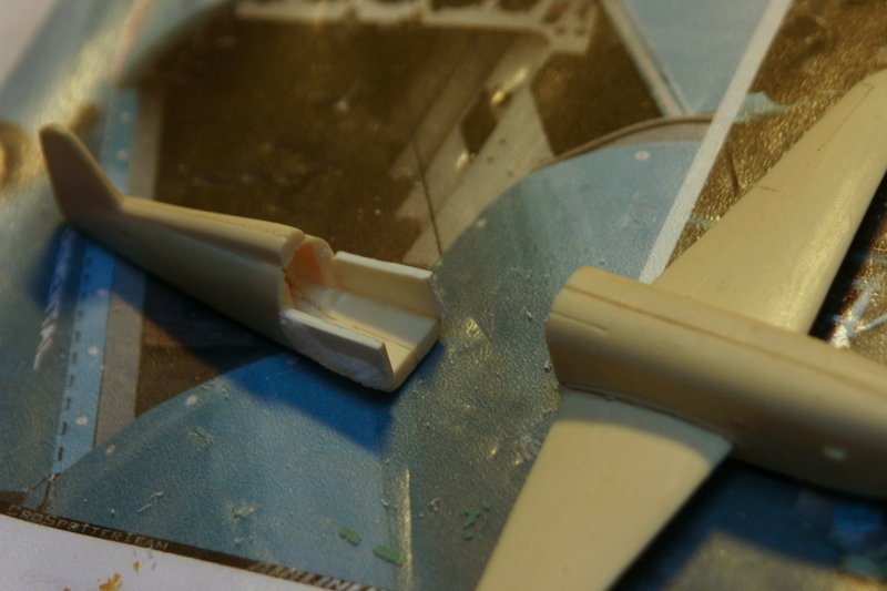 Das Modell: Es handelt sich bei dem Bausatz um einen sehr einfach gehaltenen Kit. Die Teile besitzen jedoch eine gute Gravur, müssen allerdings erst aus einer starken „Schwimmhaut“ herausgearbeitet werden. Besonders nachteilig ist, dass die Formen beim Abguss einen schrägen Spalt gehabt haben müssen, denn das Höhenleitwerk ist auf einer Seite wesentlich dicker als auf der anderen. Die Schleifarbeiten und die Nachgravur benötigen einen großen Teil der Bauzeit.