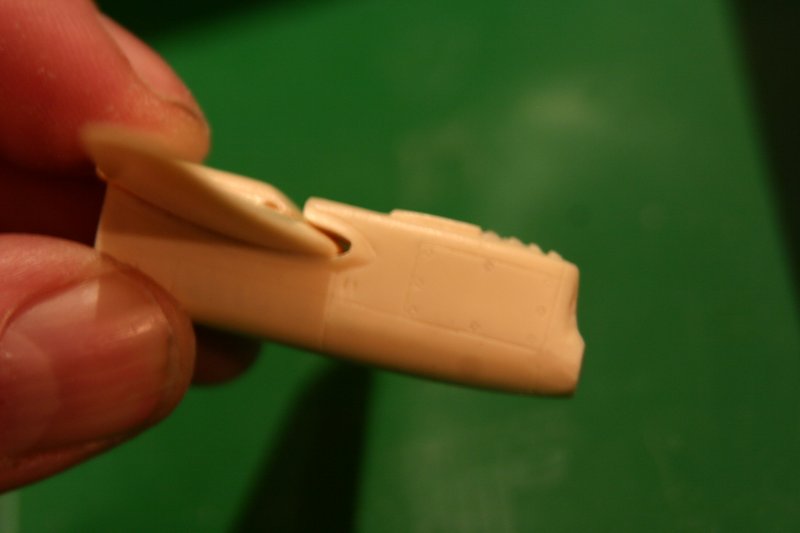 Zur besseren Durchführung der folgenden Arbeitsgänge und zur besseren Gestaltung habe ich die Auspuffstutzen entfernt und Löcher in den Rumpf gebohrt. Dort wurden später Kanülenstücke eingeklebt.