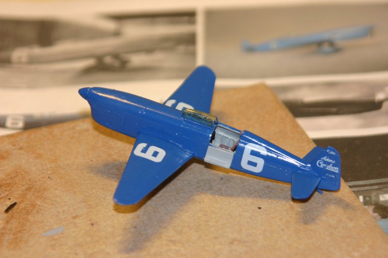 Im nächsten Schritt wurden die Kleinteile angebracht und die Details bemalt. Probleme machte dabei die Kabinenhaube. Sie ist so spröde, dass der Versuch, sie mit einer scharfen Schere auszuschneiden gleich einen Teil absplittern ließ. Ich hatte Glück, dass dieser Fehler am Rand war und ich die Kabine nur unten ein wenig kürzen musste.