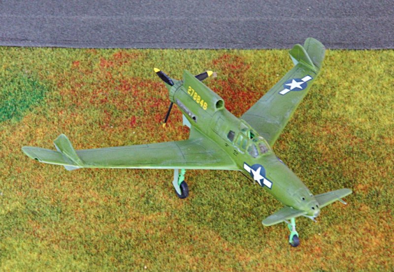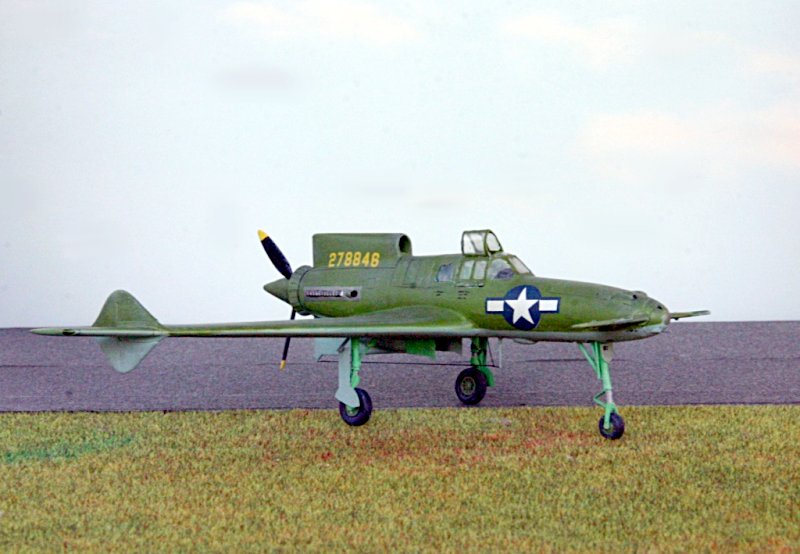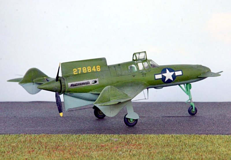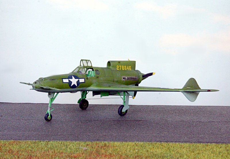 Es handelt sich bei dem Modell um die letzte Ausführung der XP-55 mit vergrößerter Flügelspannweite.