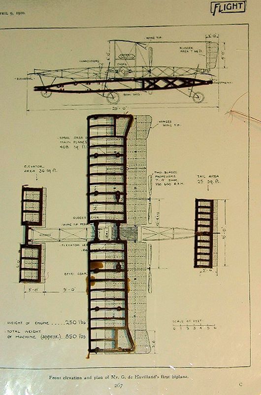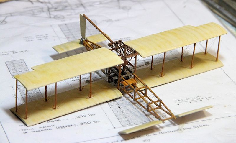 Original: Die Biplane No.1 war das erste Flugzeug des später so bekannten, britischen Konstrukteurs Geoffrey de Havilland. Sie war, wie alle Flugapparate der damaligen Zeit eine Konstruktion aus Holz, Leinwand und Spanndrähten.