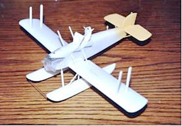 Man kann aus dem Bausatz alternativ die Schwimmer- oder die Radvariante bauen. Probleme gab es bei der Montage der Schwimmer. Diese besitzen auf der Oberseite nur einen Laufsteg, der durch etwas Versatz der Teile gegeneinander bei den Schleifarbeiten fast verschwindet. Deshalb habe ich aus dünnem Plastmaterial einen neuen Laufsteg angefertigt und aufgeklebt. Die Verbindungsstreben aus dem Bausatz habe ich durch dünnen Messingdraht ersetzt.