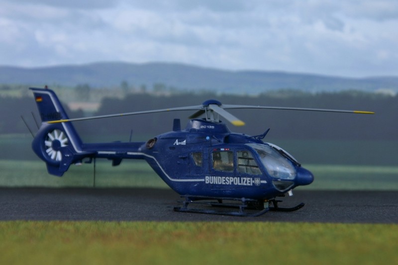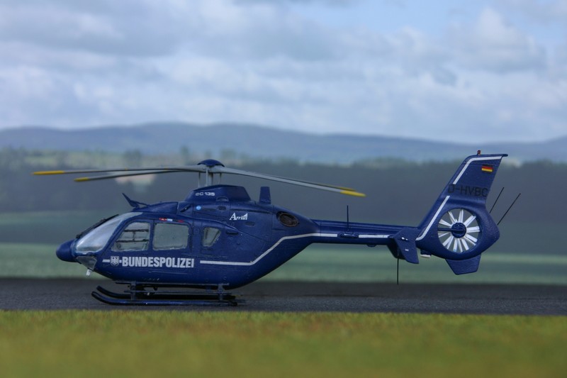 Ich habe mich zum Bau der EC 135 in der Bundespolizeivariante entschieden. Glücklicherweise war ich einige Tage zuvor auf dem Flugtag in Bautzen und konnte ausreichend Detailbilder von diesem Typ schießen.