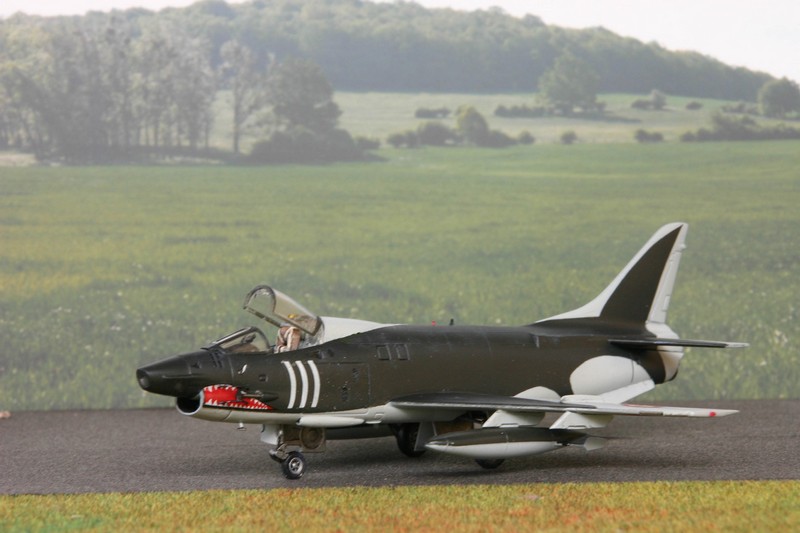 Der Bausatz der Firma Matchbox ist bereits aus den siebziger Jahren. Obwohl die Detaillierung und die wenigen positiven Gravuren absolut nicht mehr zeitgemäß sind, ist es leider das einzige, mir bekannte Modell dieses interessanten Flugzeugs. Es wird noch interessanter durch den Decalbogen der Firma Tauro, welches den Demonstrator in der attraktiven Haifisch- Bemalung zeigt.