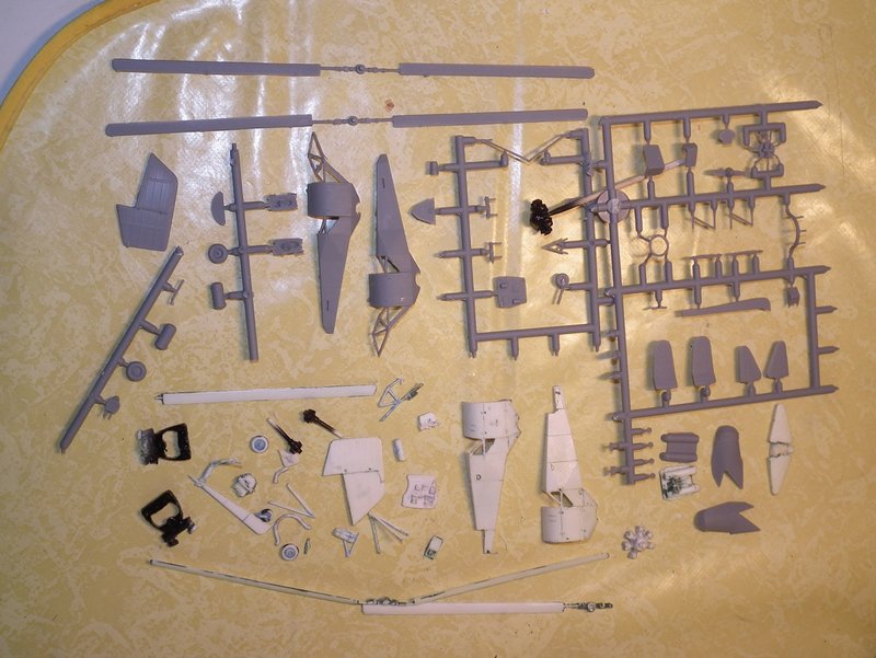 Das Modell: Vor längerer Zeit habe ich ein schlecht gebautes Modell des Flettner Kolibris von Huma gekauft. Dieses wurde gleich mit Backofenspray seiner Farbe beraubt und soweit wie möglich zerlegt. Danach lag es längere Zeit in einer Kiste und wartete auf die Montage.