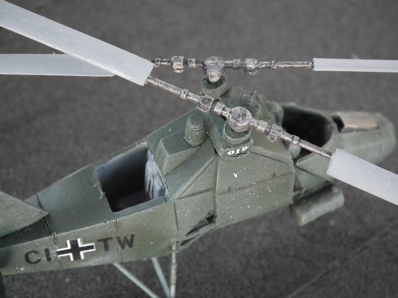Zuletzt wurden die Rotoren bemalt und aufgesetzt. Beide haben den gleichen Durchmesser und sind qualitativ gleichwertig. Da jedoch meine Huma- Rotoren bei der Demontage zerbrochen waren, habe ich die Teile von RS angepasst. Eine Versiegelung mit Seidenmattem Klarlack rundete den Bau ab.