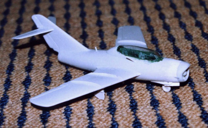 Im Vortrag wurde angeregt, den Lufteinlauf der MiG-17 auf ein Modell der Schulungs- MiG zu setzen, was sofort die neue Maschine ergeben sollte. Einen Radarkonus fand ich in meiner Grabbelkiste, und nachdem ich den Bausatz der MIG-15 UTI von KP erstanden habe, konnte der Bau losgehen.