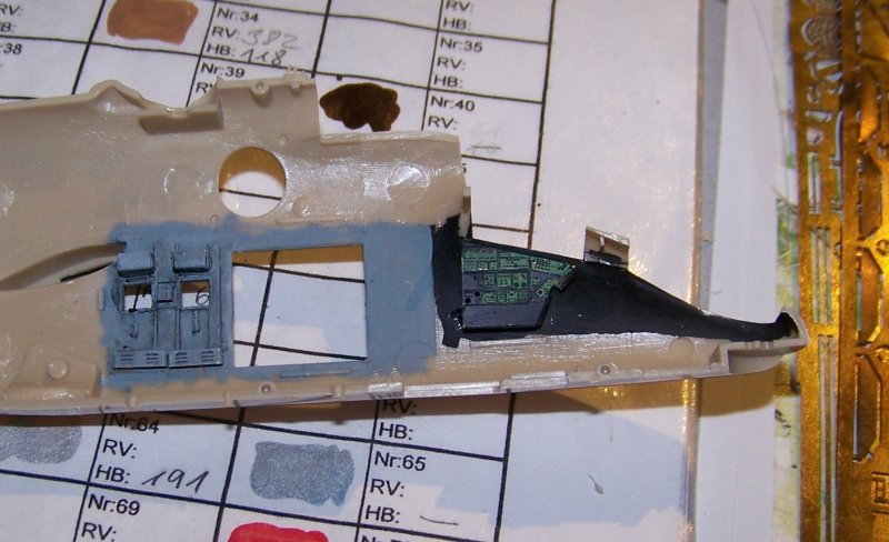 Der Bau begann mit der Gestaltung der Kabine. Ein Großteil der ca. 300 Ätzteile findet im Innenraum Verwendung, ein Teil, vor allem für die Startschienen der Panzerabwehrlenkraketen, wird nicht verwendet.