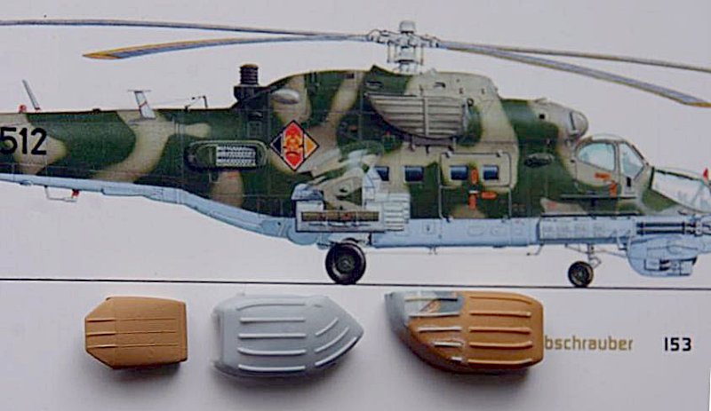 Zuerst einmal eine Korrektur zur Bezeichnung. Hinter der Hind E verbirgt sich die Variante Mi- 24W, Exportbezeichnung Mi-35. Diese besitzt nach wie vor das vierläufige MG im Kinnturm und ist nicht mit der Kanonenvariante Mi-24P identisch. Die Mi-24P, und damit die Bausatzvariante ist die Hind F.