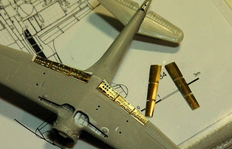 Der Bau ging mit der Montage der Kleinteile und Bemalung der Details weiter. Für die MG und das Staurohr habe ich dünne Kanülen eingesetzt. Die Bremsleitungen entstanden aus dünnem Messingdraht.