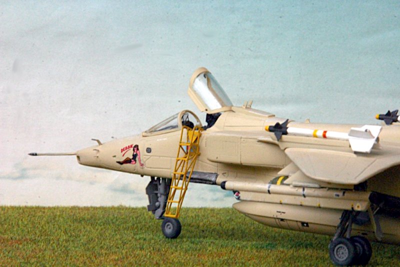 | Bewaffnung: | Zwei 30 mm Aden Kanonen im Rumpf 7 Aussenlaststationen für bis zu 4763 kg Waffen (Raketen, Bomben, Zusatztanks) |