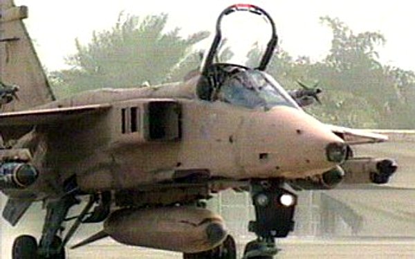 Im Golfkrieg 1991 erhielt der Jaguar seine Feuertaufe. Die Flugzeuge wurden dazu in "desert pink", einen sandfarbenen Tarnanstrich umlackiert. Im Golfkrieg flogen die Jaguare über 600 Kampfeinsätze. Sie waren oft mit 70 mm Raketenbehältern CRV7, BL755 cluster bombs an Zweifachträgern oder amerikanischen CBU-87 (nur 1 Stück je Träger)ausgerüstet. Zwei Maschinen wurden mit VICON 18 Mark 600 Aufklärungsbehältern versehen.