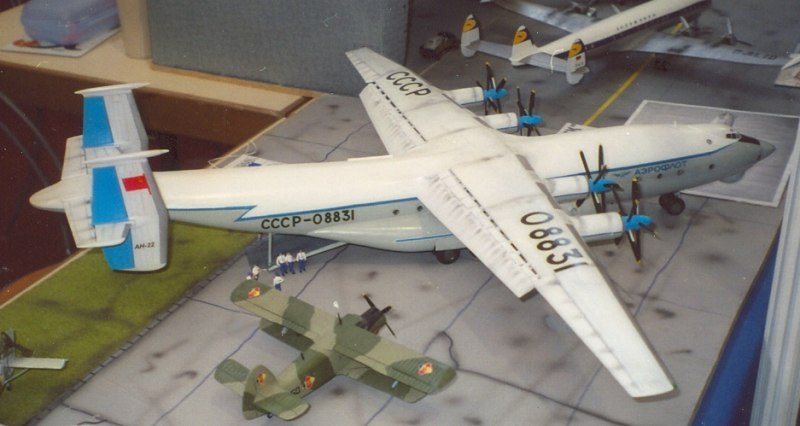 Die Antonow An-22 entstand Anfang der 60er Jahre als Großtransporter im Antonow-Konstruktionsbüro noch unter Führung von Oleg K. Antonow persönlich. Es gab natürlich einige Probleme im konstruktiven Bereich bei einem Flugzeug dieser Größe. Doch im Juni 1965 tauchte dieser Gigant der Lüfte erstmals auf dem Pariser Aerosalon in Le Bourget Paris auf und versetzte die westleiche Fachwelt in Erstauen, hatten doch die Vorserienmaschinen schon einige Weltrekorde erflogen.